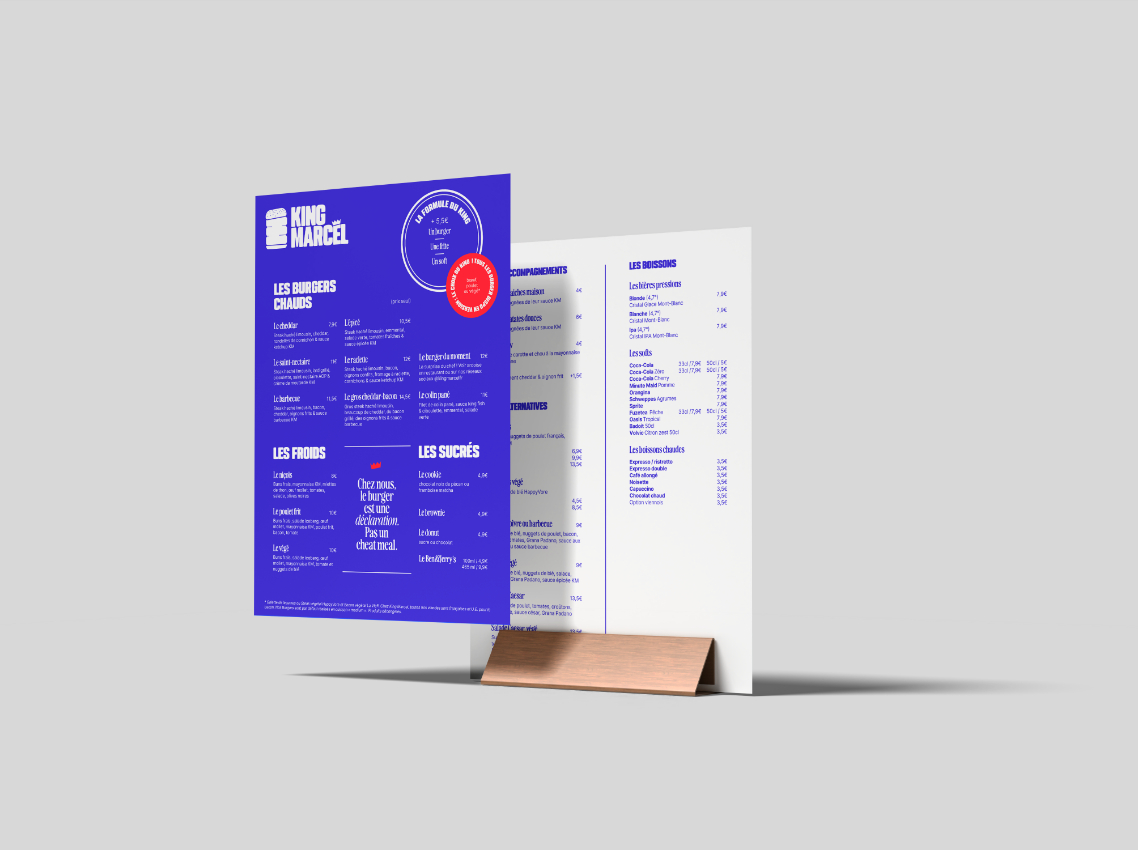 KING MARCEL revendique une idée simple : le plaisir est une liberté. Une liberté qui ne se justifie pas, ne se compte pas, ne se négocie pas. Ici, le burger n’est pas un « écart » : c’est une culture du goût, vivante, créative, joyeuse.